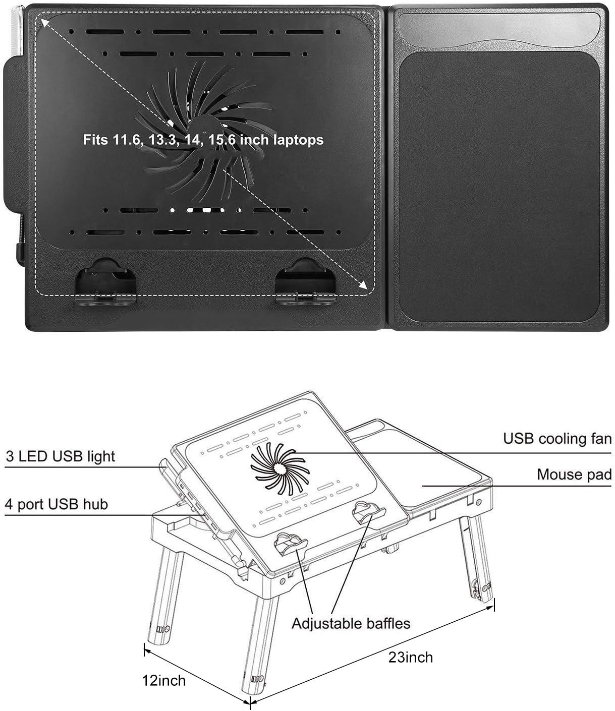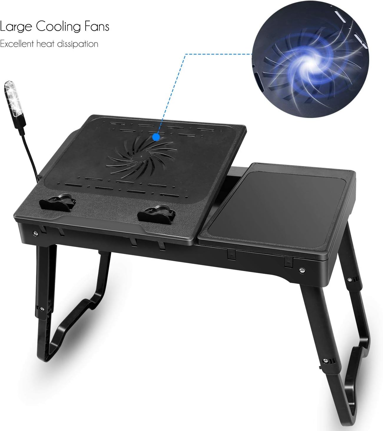 Laptop Stand for Bed-Multi-Functional Laptop Bed Table Tray w/Internal Cooling Fan & 2 Independent Laptop Stands-Foldable & 3 Different Height Laptop Desk-LED Lamp-4 Port USB,for Home/Office