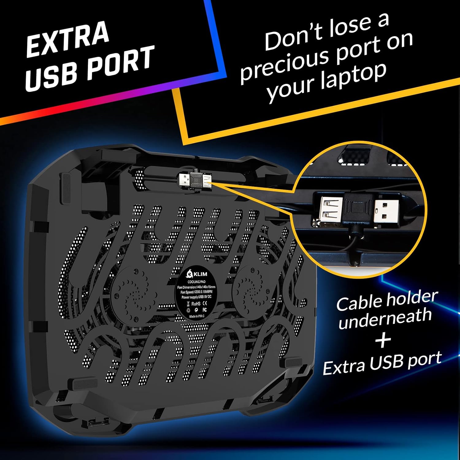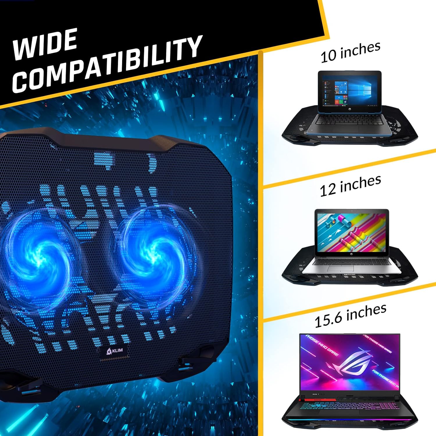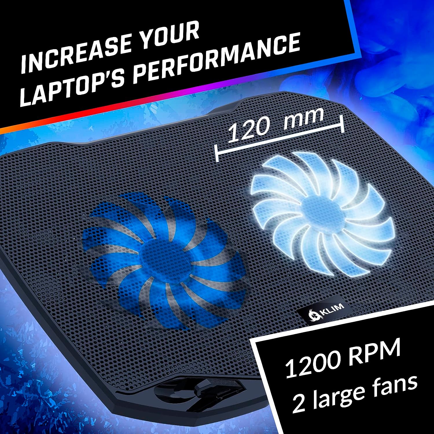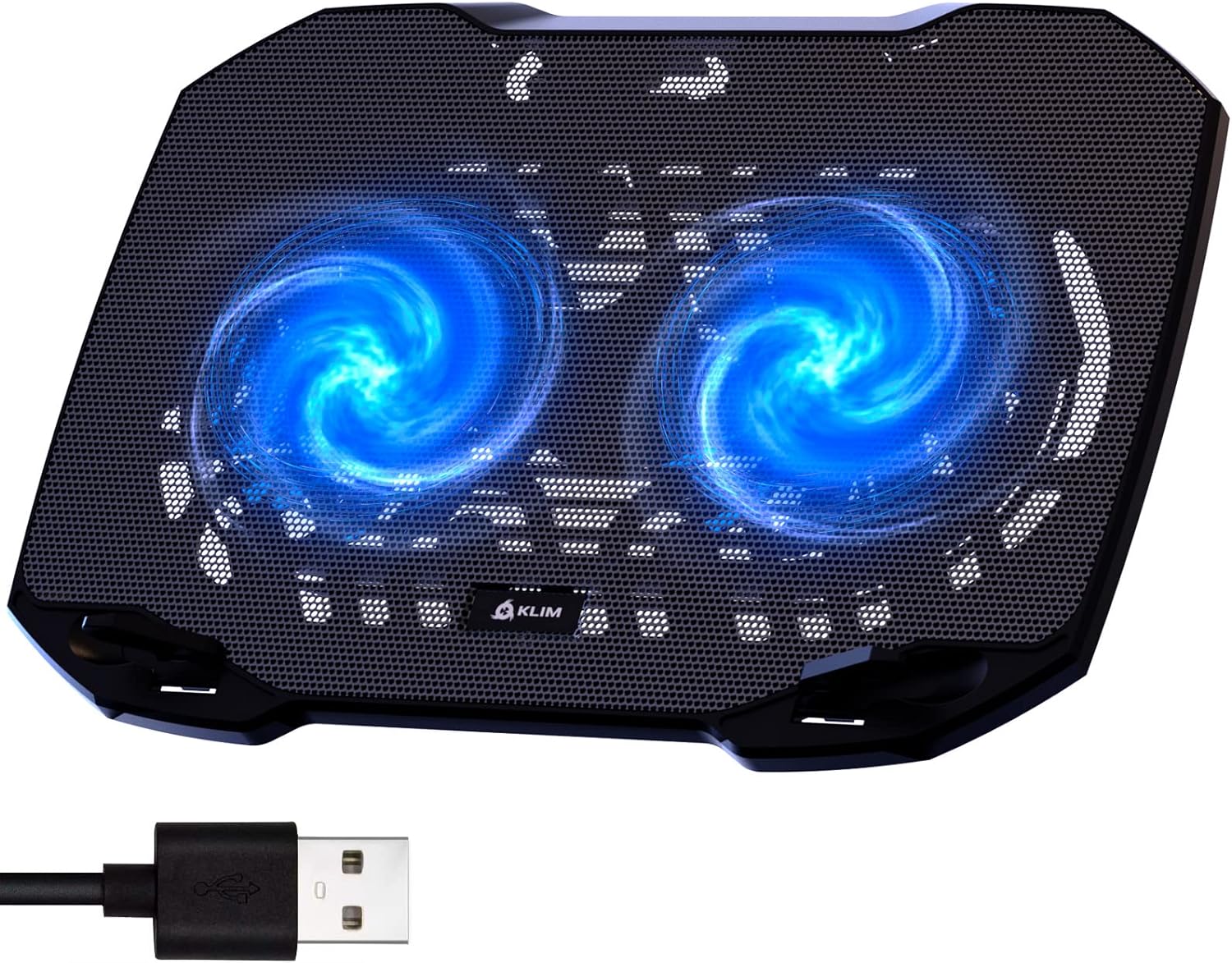 Pro Laptop Cooling Pad – NEW 2023 – Powerful Rapid Action Laptop Cooler – Sturdy Laptop Stand with Fan – Ventilador para laptop – Portable and Quiet – 2 USB Ports – PC Mac – 10-15.6″ – Black/Blue